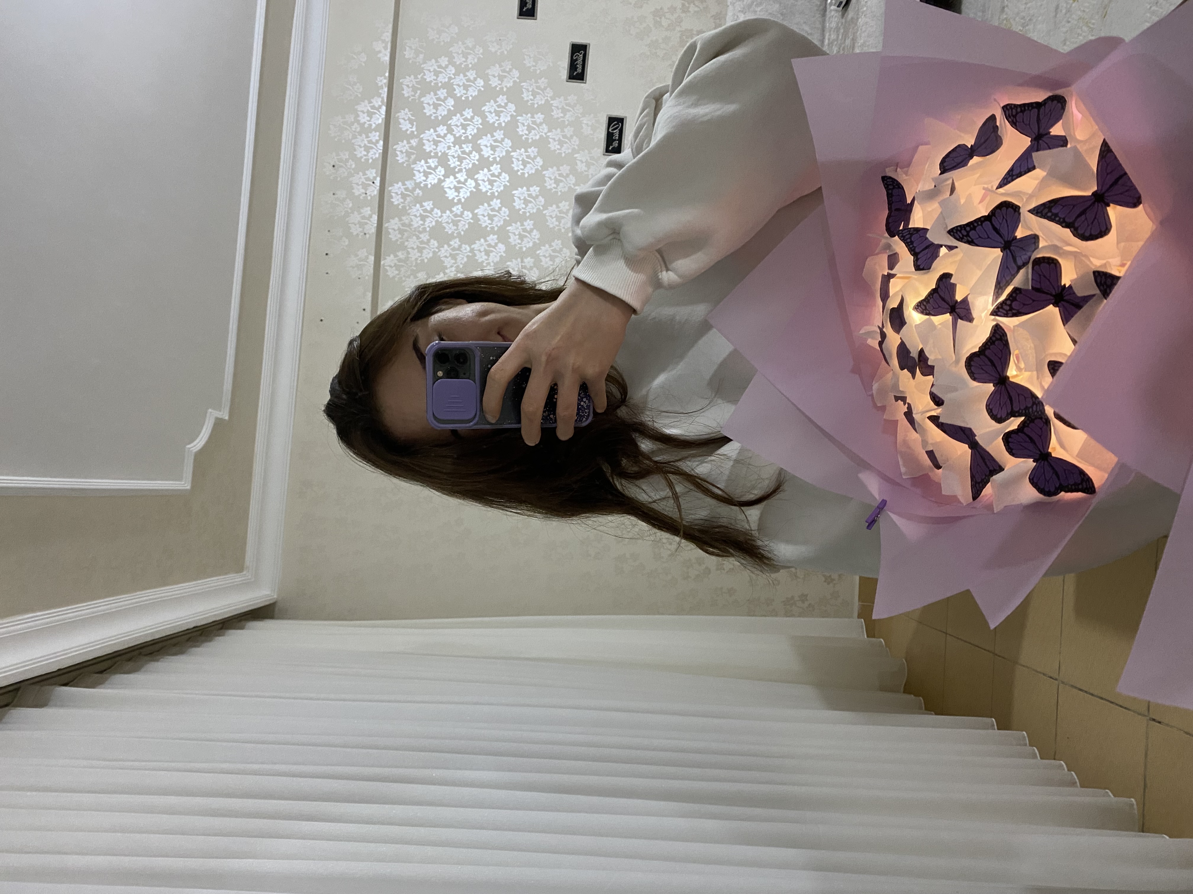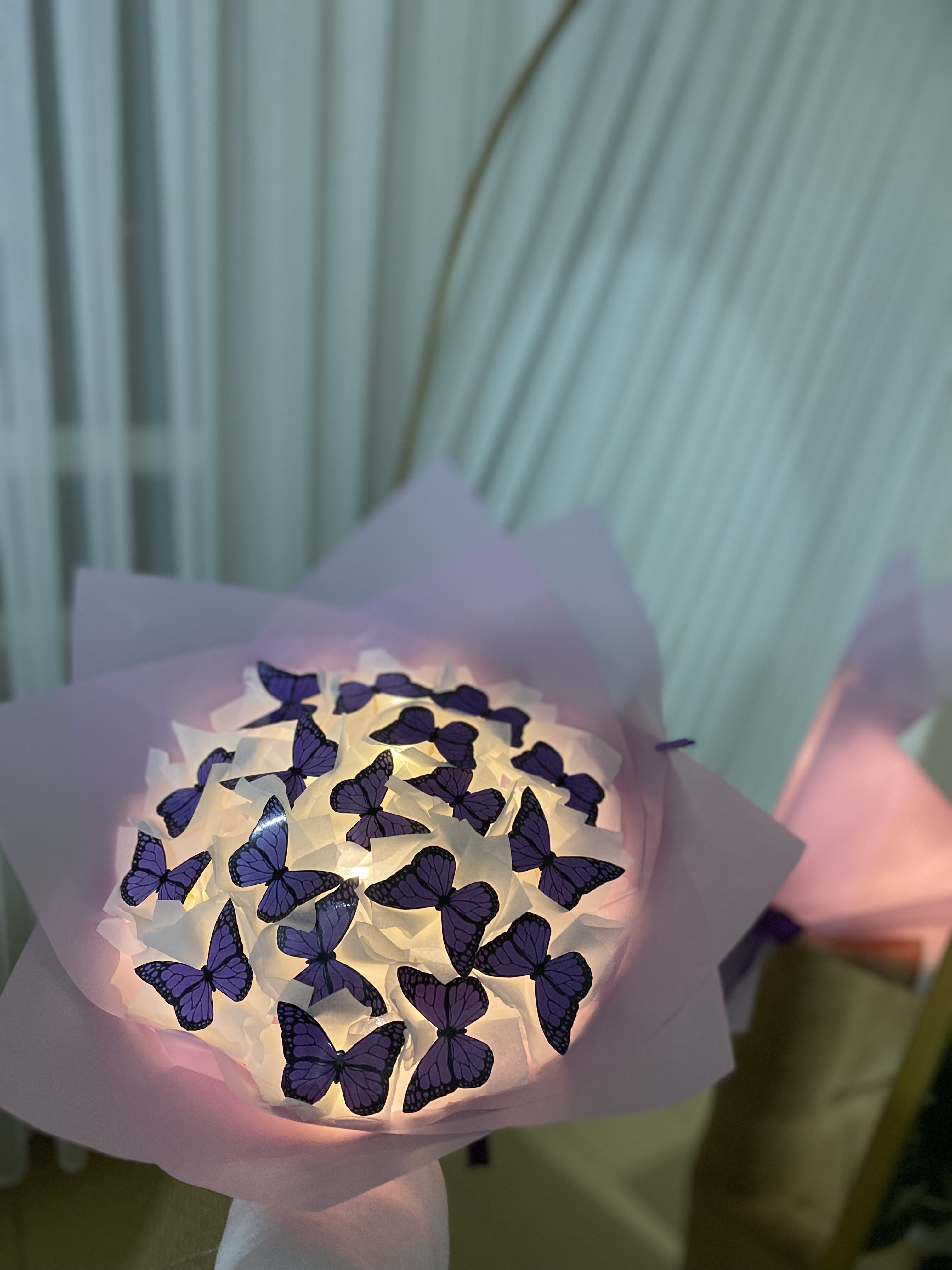 Orta boy mor ışıklı kelebek buketi