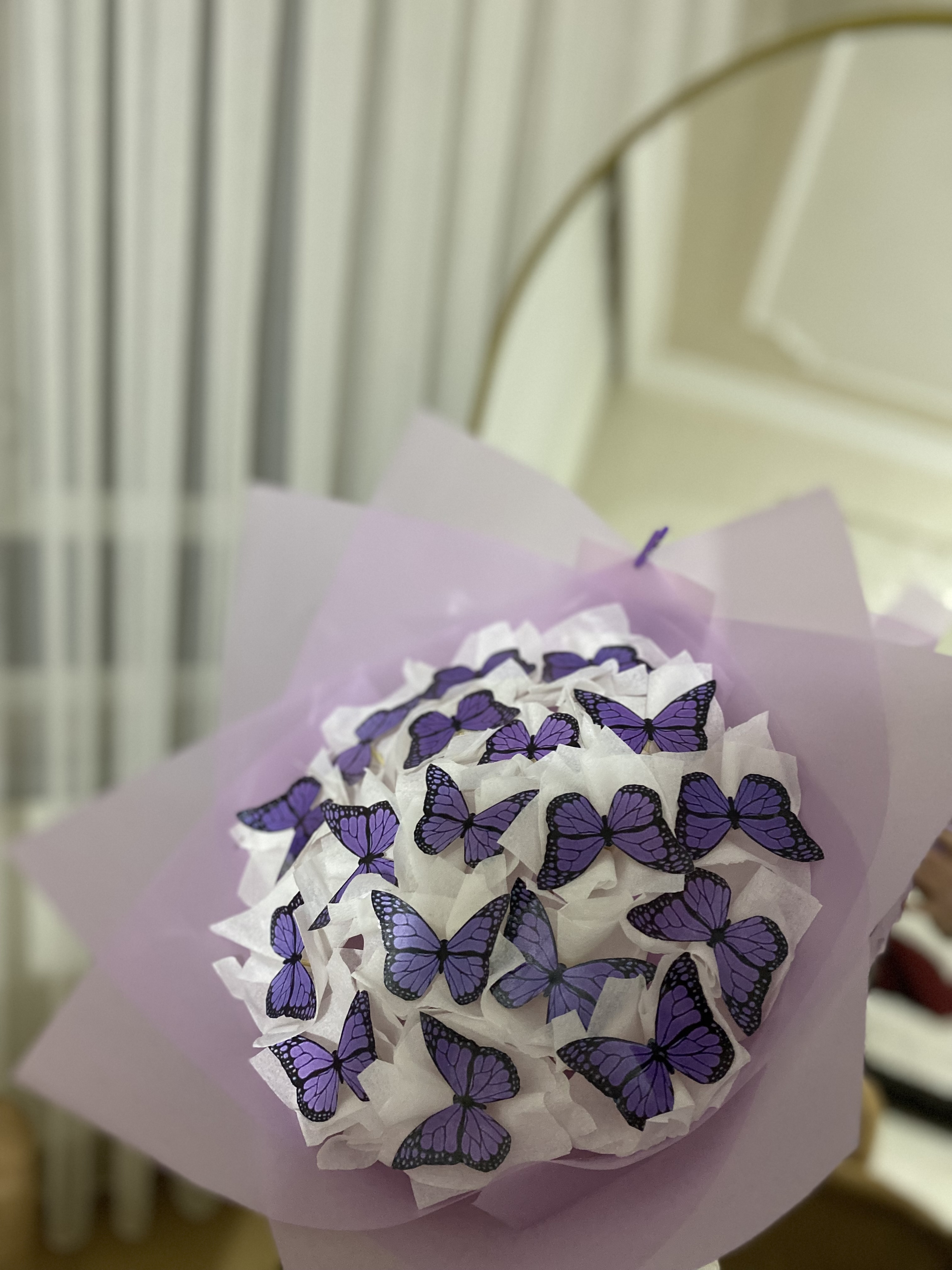 Orta boy mor ışıklı kelebek buketi